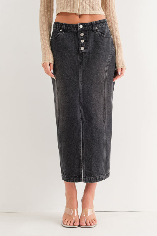 Black denim low waist skirt