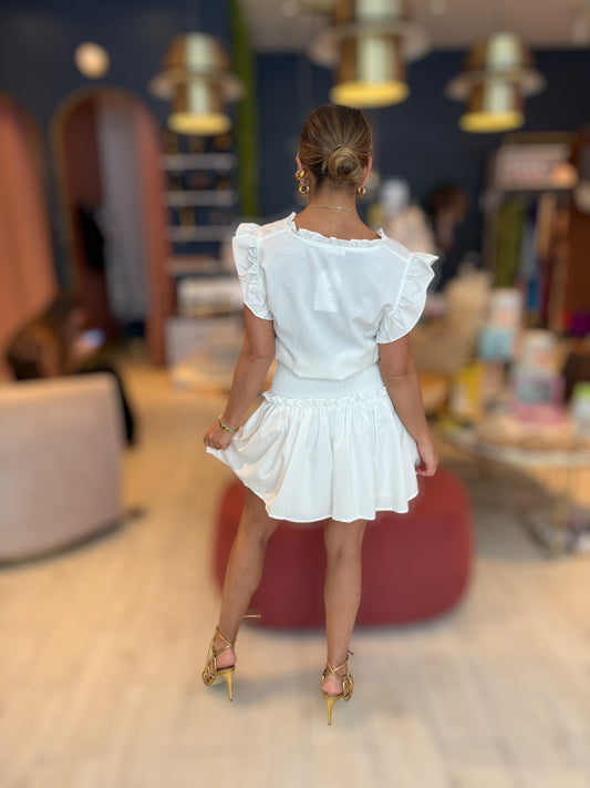 White Smocked ruffled Dress