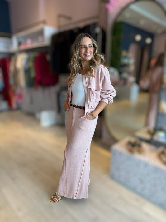 Pink linnen tzniut skirt set