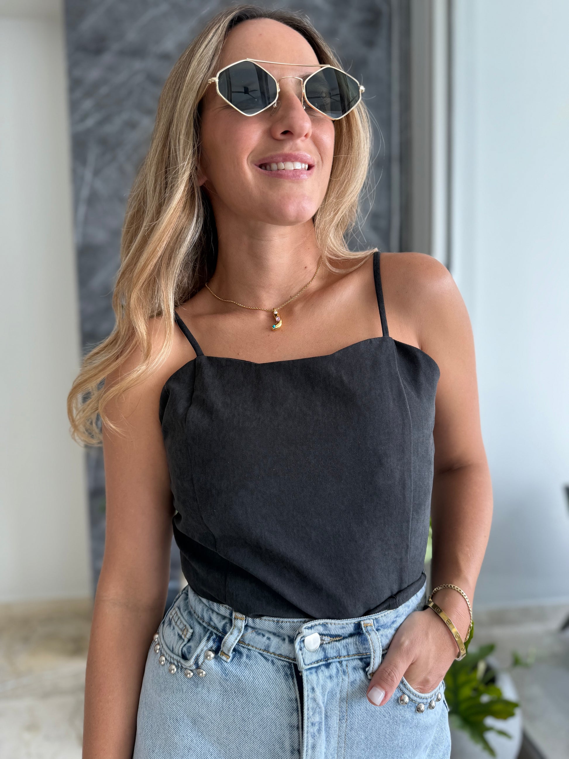 Black silky top