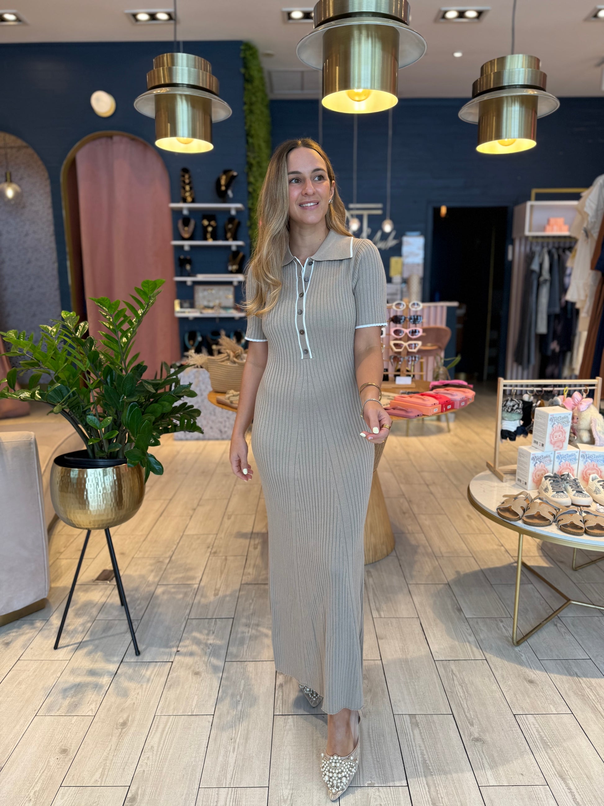 Taupe ribbed dress